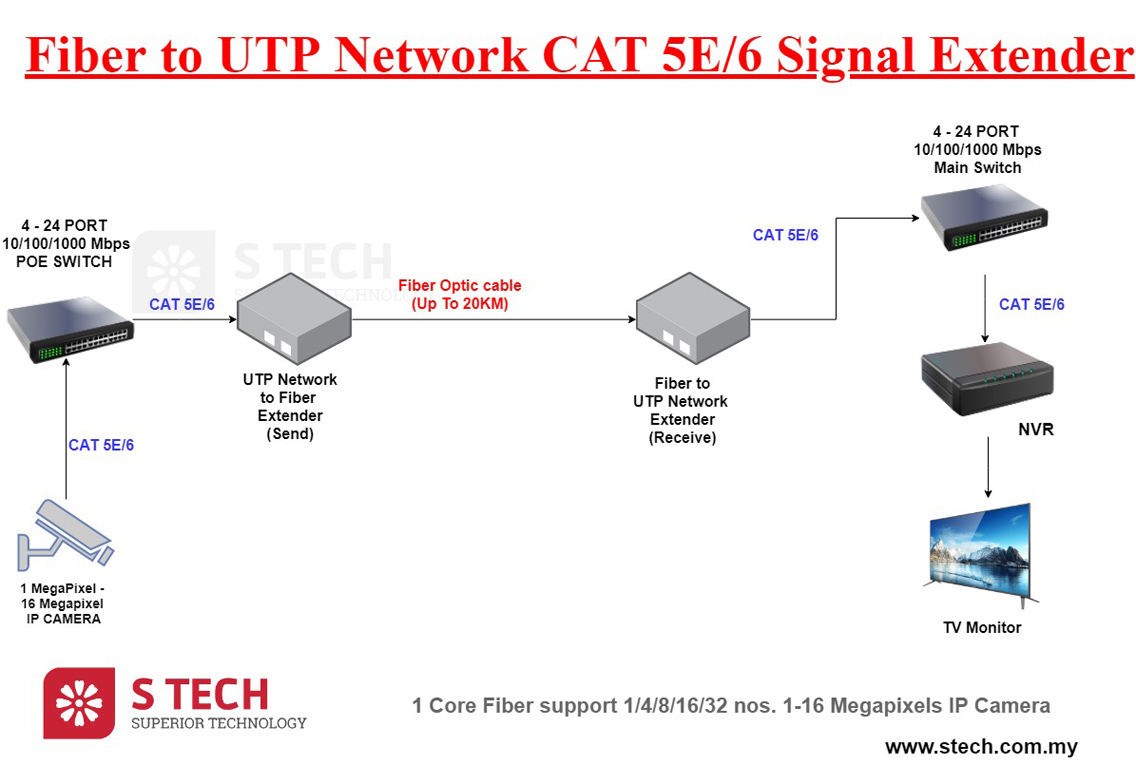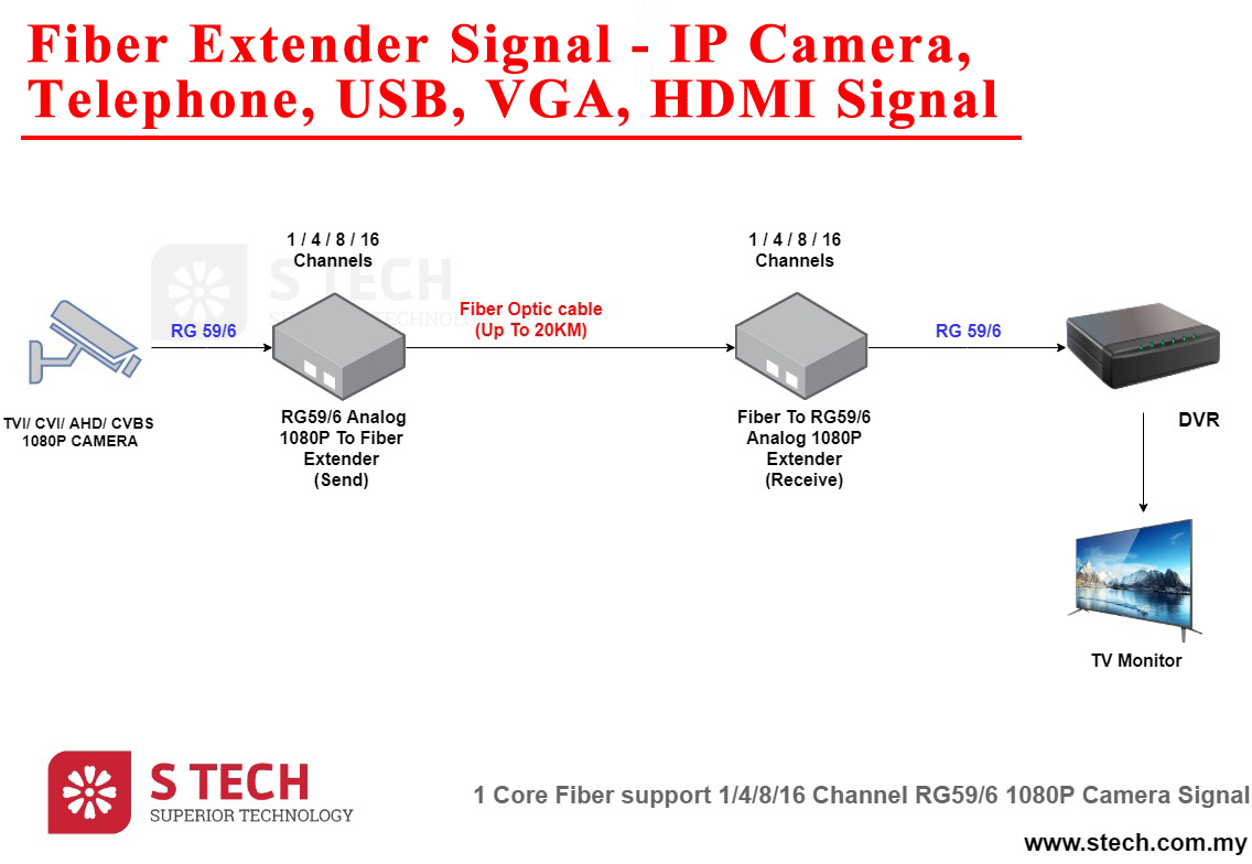 Fiber Extender Signal - IP Camera, Telephone, USB, VGA, HDMI Signal