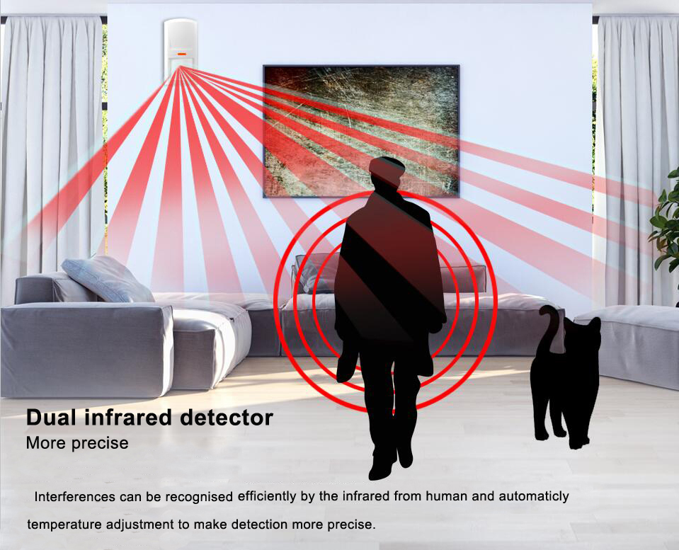 HW-03D wireless PIR Infrared detector is a special home and business PIR Infrared detector with delicate and modern design (appearance has patent), adopting the latest technology of smart logic IC and high-performance sensor to achieve high stability and avoid alarm failure.