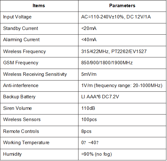 - Can preset 3 SMS numbers, when alarming, system will send SMS.